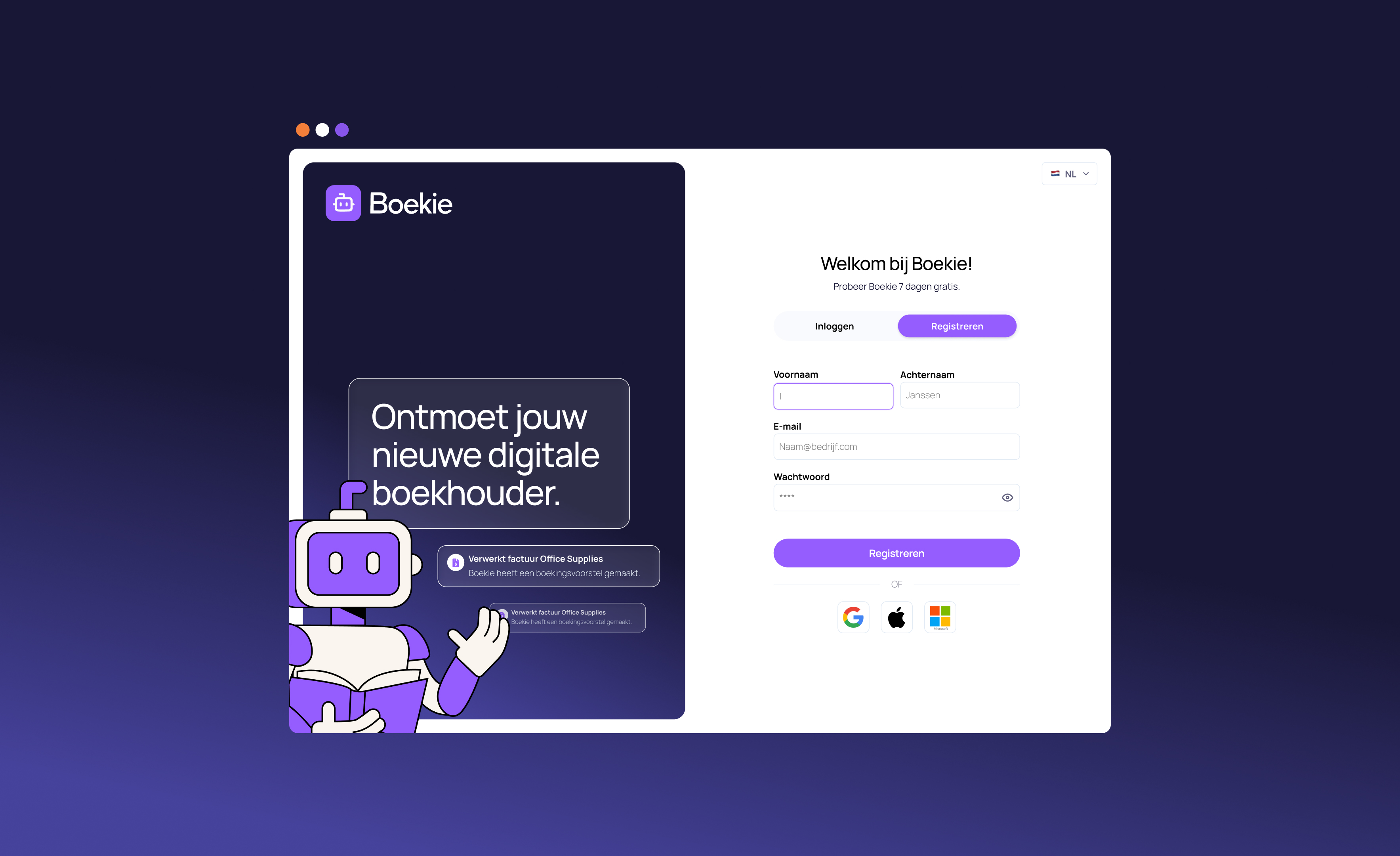 Voor veel ondernemers is boekhouding geen kernactiviteit, maar een constante bron van ruis. Het is complex, tijdrovend en vaak onzichtbaar werk dat tóch moet gebeuren. Een AI-agent die dit voor je oplost: het voelt voor veel mensen abstract, onpersoonlijk en onbetrouwbaar. De eigenaar van dit platform had al een poging gedaan met AI om een huisstijl te maken, maar deze was te koeltjes en generiek. Voor mij de uitdaging om de huisstijl en het platform een upgrade te geven die persoonlijk, herkenbaar en betrouwbaar voelt.